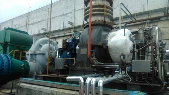 我公司于2013年8月承揽了赤天化集团贵州金赤化工有限责任公司型号为N2.25-0.5/0.012的驱动循环水泵用汽轮机一台/套的改造项目。该项目是贵州金赤化工的节能改造项目,计划利用甲醇工段富产的40吨左右的压力为0.5Mpa(g)的饱和蒸汽用冷凝式汽轮机替换原有循环水厂6台单台功率为2250KW电机驱动的循环水泵的其中两台。